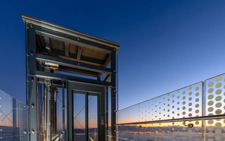Σκάλες από χάλυβα και ένα γυάλινο ασανσέρ με 360ο θέα οδηγούν από το χαμηλότερο σημείο της πλατφόρμας στην κορυφή της αρχικής στρατιωτικής βάσης. Εδώ, η παλιά οκταγωνική βάση των πυροβόλων έχει, πλέον, μετατραπεί σε κάθισμα για τους επισκέπτες, για να μπορούν να απολαύσουν την πανοραμική θέα που απλώνεται μπροστά τους.