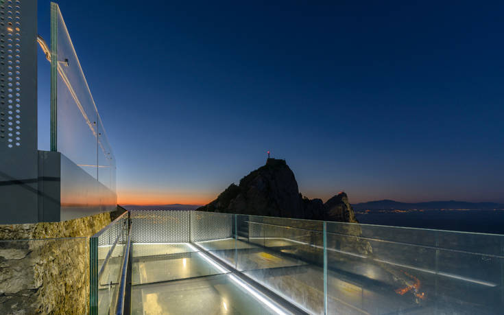 Σε ένα από τα ψηλότερα σημεία στο Βράχο του Γιβραλτάρ ο επισκέπτης του Skywalk Gibraltar έχει την δυνατότητα να απολαύσει απρόσκοπτη πανοραμική θέα σε ένα τοπίο που συναντιούνται τρεις διαφορετικοί κόσμοι: αυτοί της Αφρικής, της Μεσογείου και του Ατλαντικού Ωκεανού.