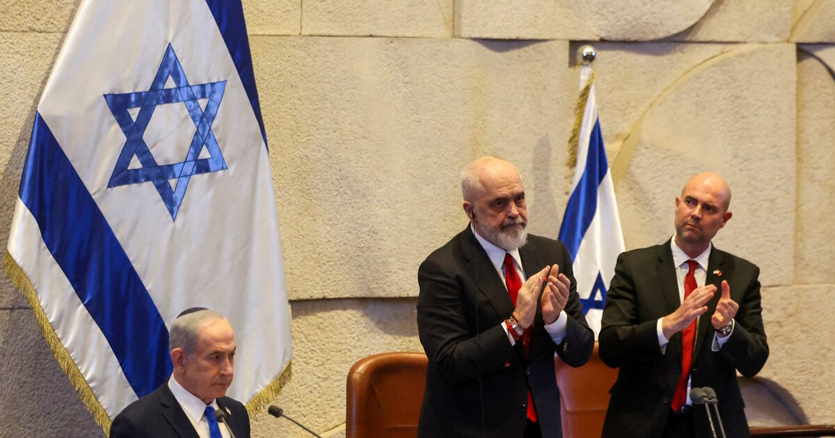 Στην Κνεσέτ στην Ιερουσαλήμ μίλησε ο πρωθυπουργός της Αλβανίας, Έντι Ράμα τη Δευτέρα (26.01.2026), επαινώντας τον Μπέντζαμιν Νετανιάχου. «Μπορώ να σας ενημερώσω ότι τα γόνατά μου τρέμουν δίπλα του», είπε ο Ράμα, χαρακτηρίζοντας τον Ισραηλινό πρωθυπουργό ως έναν από τους πέντε κορυφαίους ομιλητές στον κόσμο.