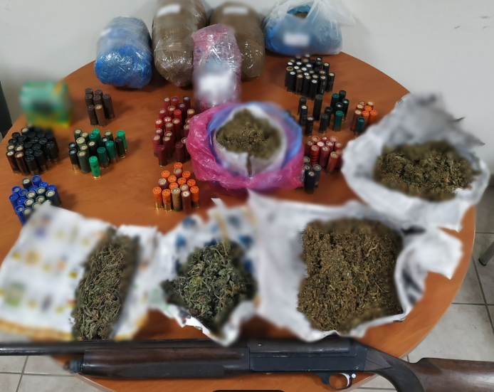 Κατασχέθηκαν πάνω από -5,5- κιλά κάνναβης, δενδρύλλια κάνναβης, σπόροι κάνναβης, ναρκωτικά δισκία, ζυγαριές ακριβείας, κυνηγετικό όπλο, κυνηγετικά φυσίγγια, ξιφολόγχη, σπαθί, μαχαίρια κ.α.