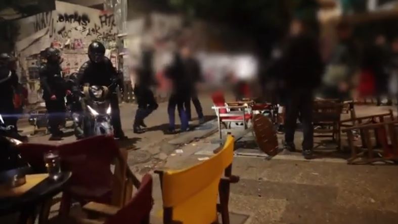Ακολούθησε επίθεση κατά των αστυνομικών με πέτρες, μπουκάλια και καρέκλες, με αποτέλεσμα τρεις ένστολοι να τραυματιστούν ελαφρά.