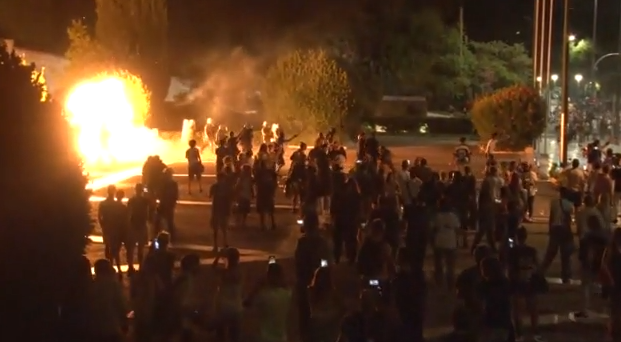 Ομάδες κουκουλοφόρων έστησαν οδοφράγματα, έβαλαν φωτιά σε κάδους, και επιτέθηκαν με πέτρες και μολότοφ στις δυνάμεις των ΜΑΤ. Η αστυνομία απάντησε με εκτεταμένη χρήση δακρυγόνων και κρότου-λάμψης.