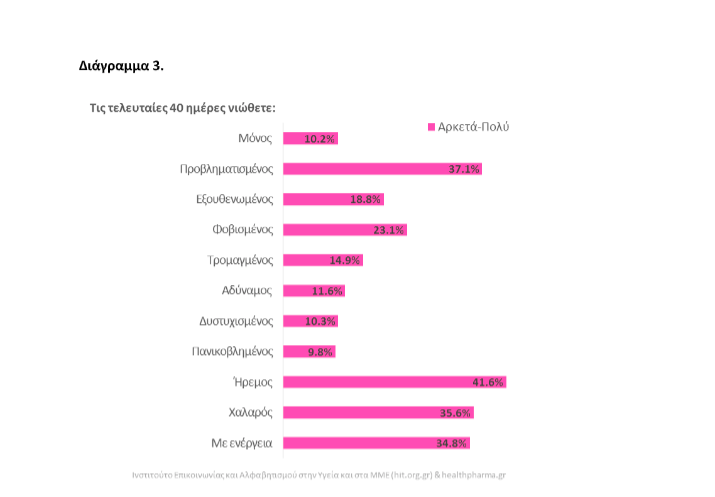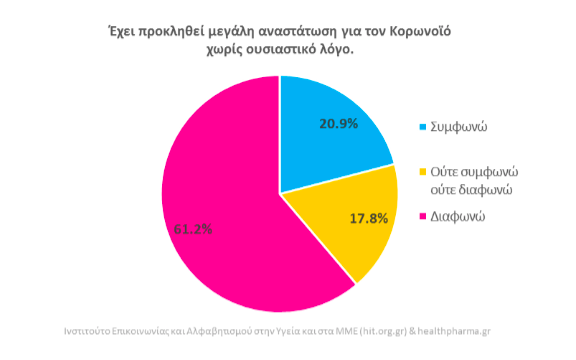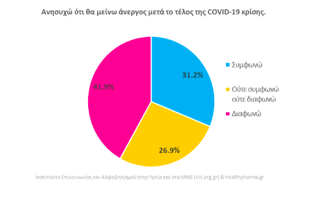 Έκδηλη παραμένει η ανησυχία των πολιτών αναφορικά με το μέλλον της κρίσης που προκαλεί η νόσος COVID-19, σε έρευνα που πραγματοποίησε το Ινστιτούτο Επικοινωνίας και Αλφαβητισμού στην Υγεία και στα ΜΜΕ (hit.org.gr) και σε δείγμα 1.322 ερωτηθέντων, από τις 23 έως τις 28 Απριλίου του 2020, σε συνεργασία με τη διαδικτυακή σελίδα ενημέρωσης healthpharma.gr .