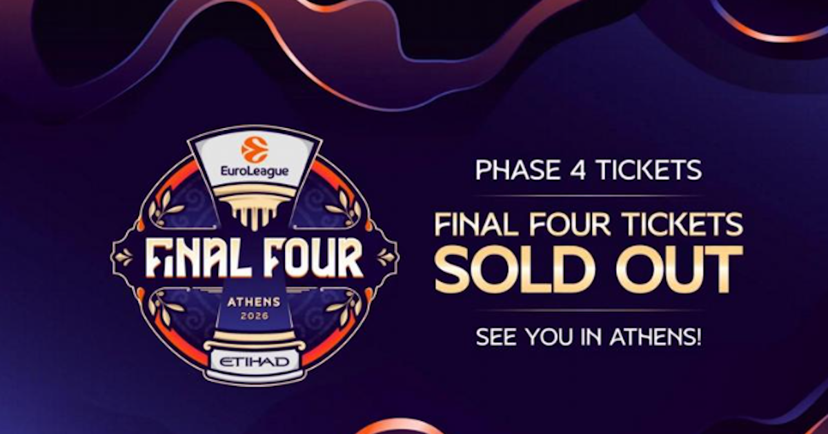 Η εξαιρετική ζήτηση για το Final Four της Euroleague 2026 στην Αθήνα, που παρουσιάζεται από την Etihad, έφτασε στο αποκορύφωμά της, καθώς όλα τα εισιτήρια που διατέθηκαν στο ευρύ κοινό, συμπεριλαμβανομένης της τελικής διάθεσης της Φάσης 4, έχουν επίσημα εξαντληθεί.