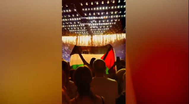 Παλαιστινιακές σημαίες κάνουν την εμφάνισή τους, ως δια μαγείας όμως δεν υπάρχουν πουθενά στην επίσημη ζωντανή μετάδοση. Όπου φάνηκε έστω και κάποιο ίχνος παλαιστινιακής σημαίας, οι διοργανωτές φρόντισαν να εξαφανιστεί.