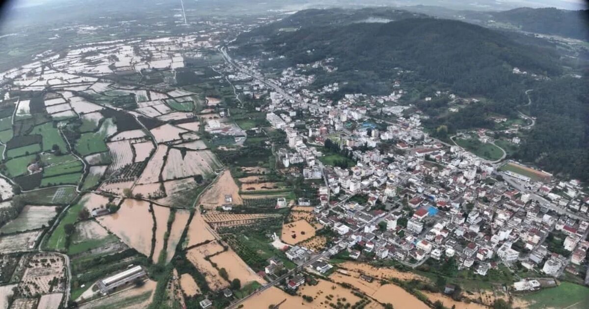 Εικόνες από ψηλά, δείχνουν το μέγεθος της καταστροφής, με τεράστιες εκτάσεις να έχουν μετατραπεί σε μία λίμνη λάσπης προκαλλώντας μεγάλη καταστροφή στις εκτάσεις της περιοχής.