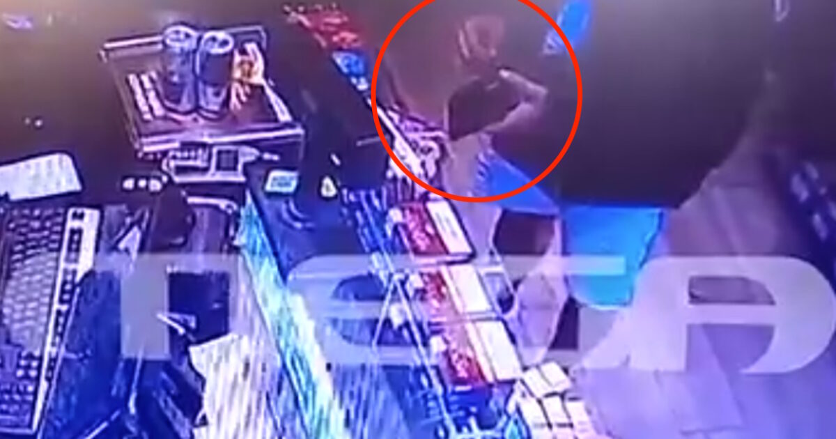 Ο νεαρός φερόμενος ως συνεργός, μπήκε μέσα σε μίνι μάρκετ με τη θήκη κιθάρας στην πλάτη, φορώντας και το κράνος του και φαίνεται να ανοίγει το ψυγείο. Στη συνέχεια πήγε άνετος στο ταμείο να πληρώσει, βγάζοντας ένα 50άρικο.