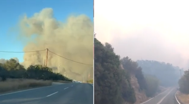 Στο σημείο της φωτιάς πνέουν δυνατοί άνεμοι και η φωτιά είναι ανεξέλεγκτη, έχοντας φθάσει στη θάλασσα.
