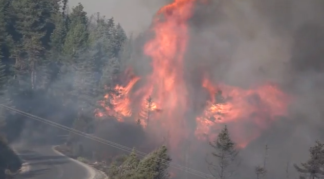 Βοηθούμενη από τους ανέμους που έπνεαν στην περιοχή ξέφυγε και επεκτάθηκε γρήγορα σε δασική έκταση, ανεβαίνοντας προς το βουνό που είναι γεμάτο πεύκα και έλατα.