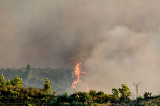 Μεγάλη ήταν η κινητοποίηση της Πυροσβεστικής με 15 οχήματα, 6 αεροσκάφη και 1 ελικόπτερο για την κατάσβεση της πυρκαγιάς που καίει αγροτοδασική έκταση.