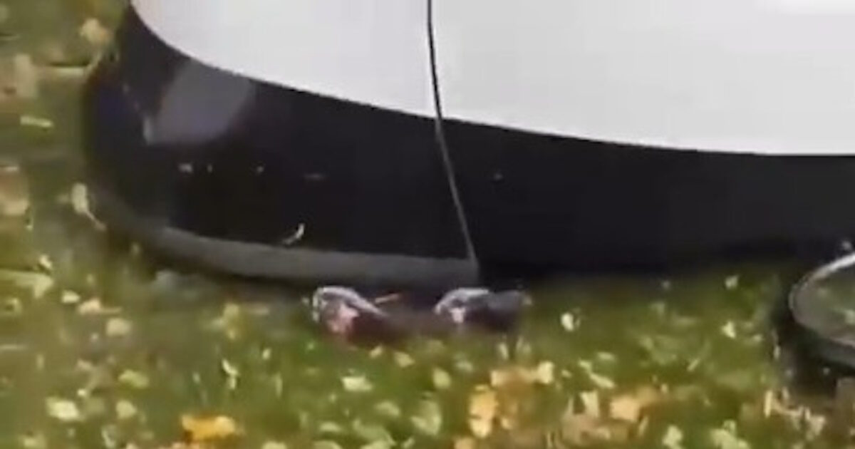 Σε ένα βίντεο που τράβηξε περαστικός, διακρίνονται μόνο τα πόδια του παιδιού που προεξέχουν μπροστά από το τραμ.