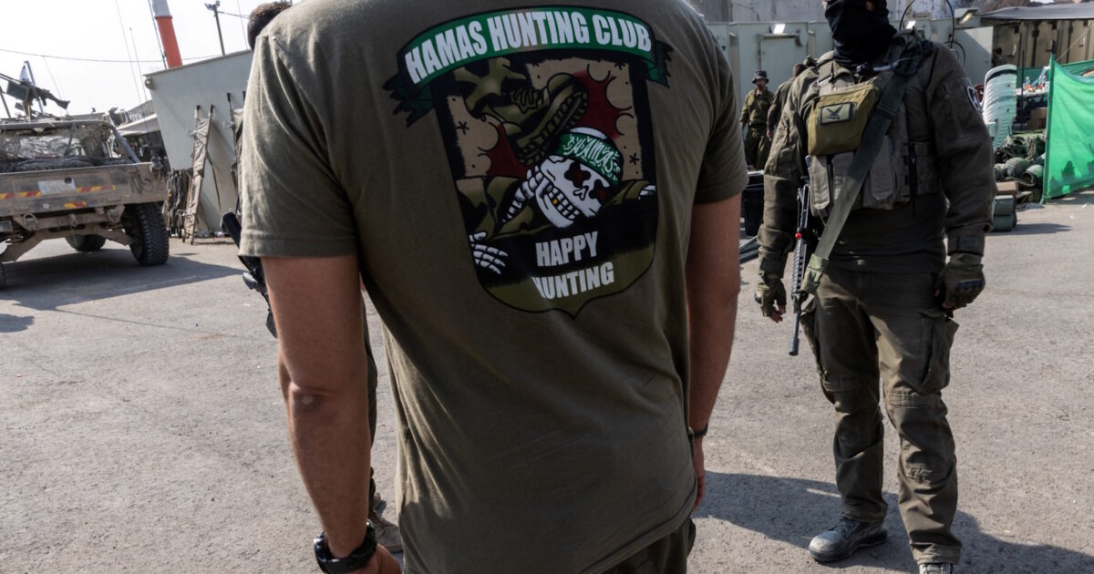 Ισραηλινός στρατιώτης με μπλούζα που λέει «Κυνηγός μαχητών της Χαμάς» / REUTERS / Nir Elias