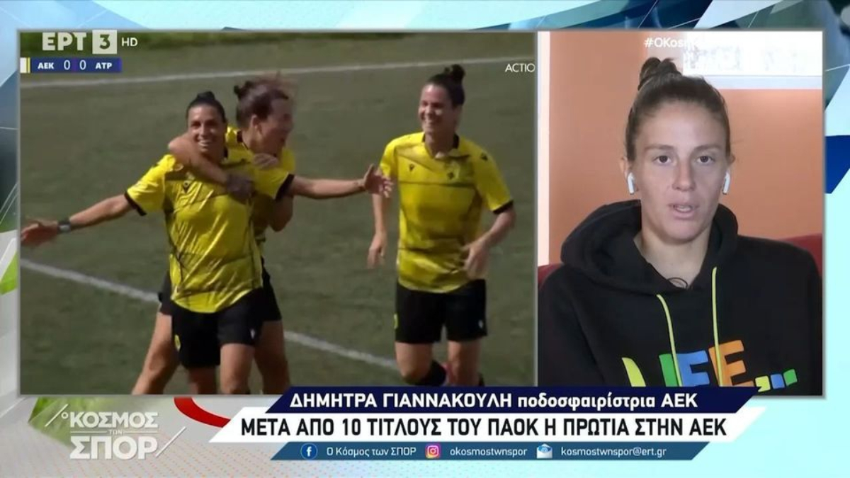Η ΑΕΚ αναδείχθηκε πρωταθλήτρια στο ποδόσφαιρο γυναικών εκθρονίζοντας τον ΠΑΟΚ που είχε κατακτούσε για δέκα συναπτά έτη τον τίτλο. Η Δήμητρα Γιαννακούλη φιλοξενήθηκε στην εκπομπή της ΕΡΤ, “Κόσμος των Σπορ”.
