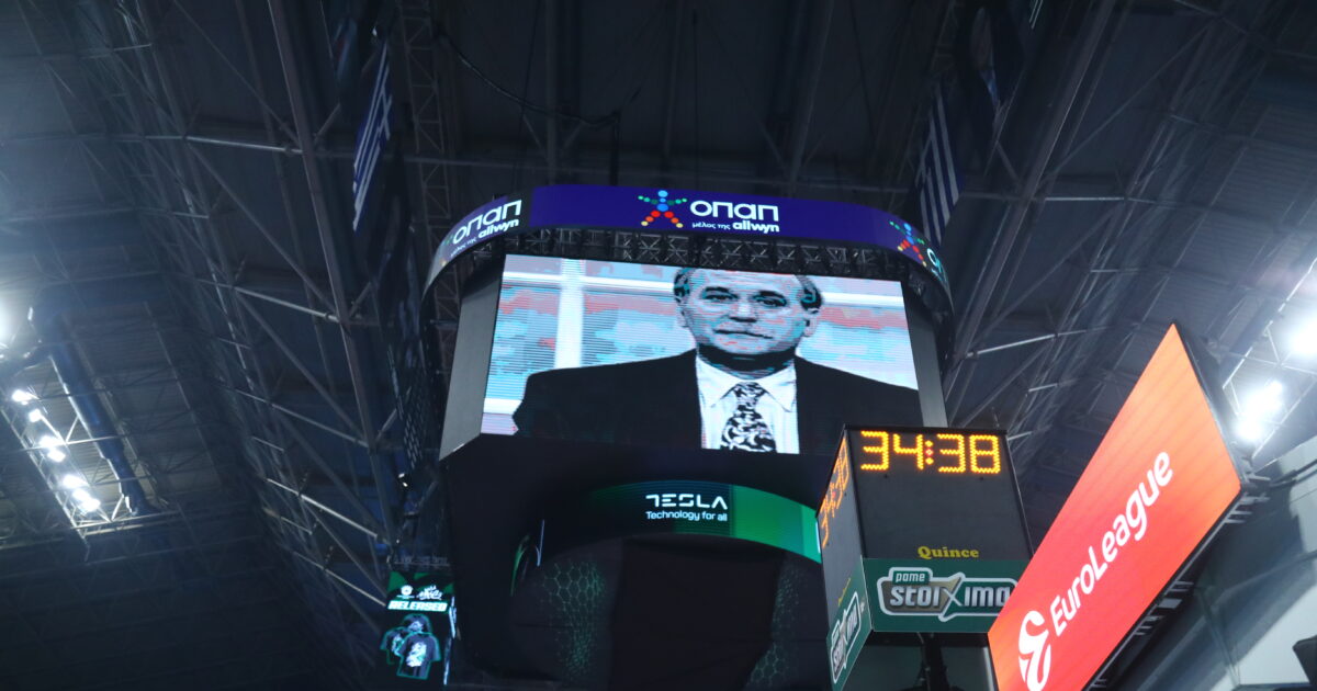 Λίγο πριν το τζάμπολ του αγώνα Telekom Center Athens, ένα video για τον εμβληματικό δημοσιογράφο, συγκίνησε όλο τον κόσμο στις κερκίδες των οπαδών του Παναθηναϊκού.