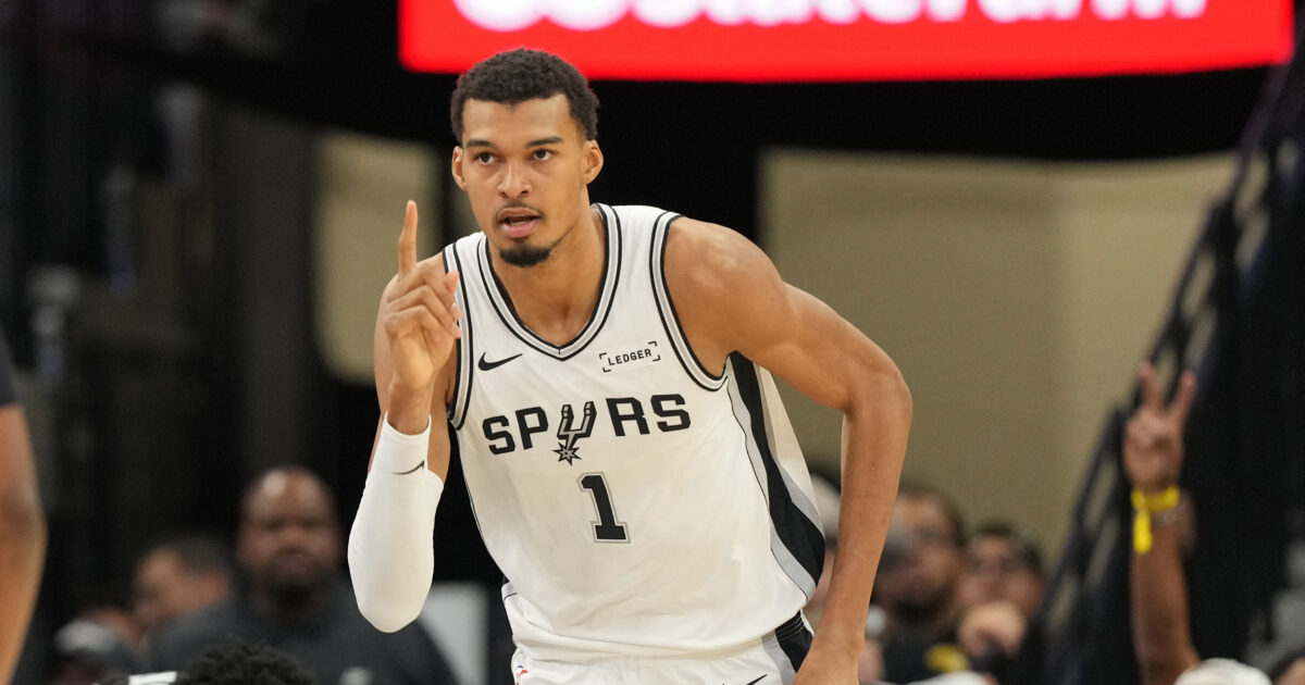 Ο Γουεμπανιάμα με τη φανέλα των Σπερς/ Mandatory Credit: Scott Wachter-Imagn Images