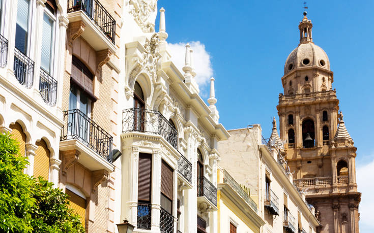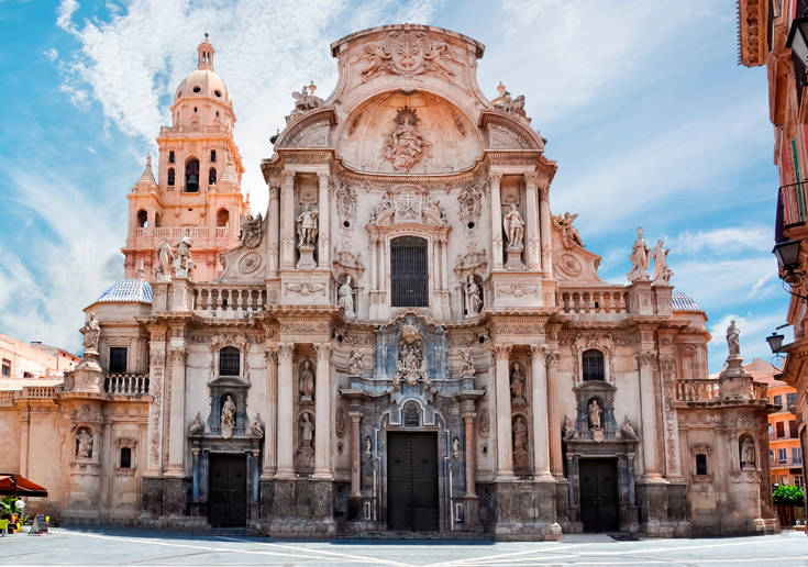 Αξίζει να επισκεφθεί κανείς το ιστορικό κέντρο με τον καθεδρικό της Μούρθια που χρονολογείται από το 1385, το εντυπωσιακό Real Casino de Murcia που άρχισε ως λέσχη κυρίων το 1847 και τις τεράστιες πλατείες. Από τις πιο εντυπωσιακές είναι η Plaza del Cardenal Belluga με το αμφιλεγόμενο Moneo, ένα φωτεινό και μοντέρνο κτίριο που στεγάζει το δημαρχείο της πόλης και το Palacio Episcopal, που χρονολογείται από το 1754.