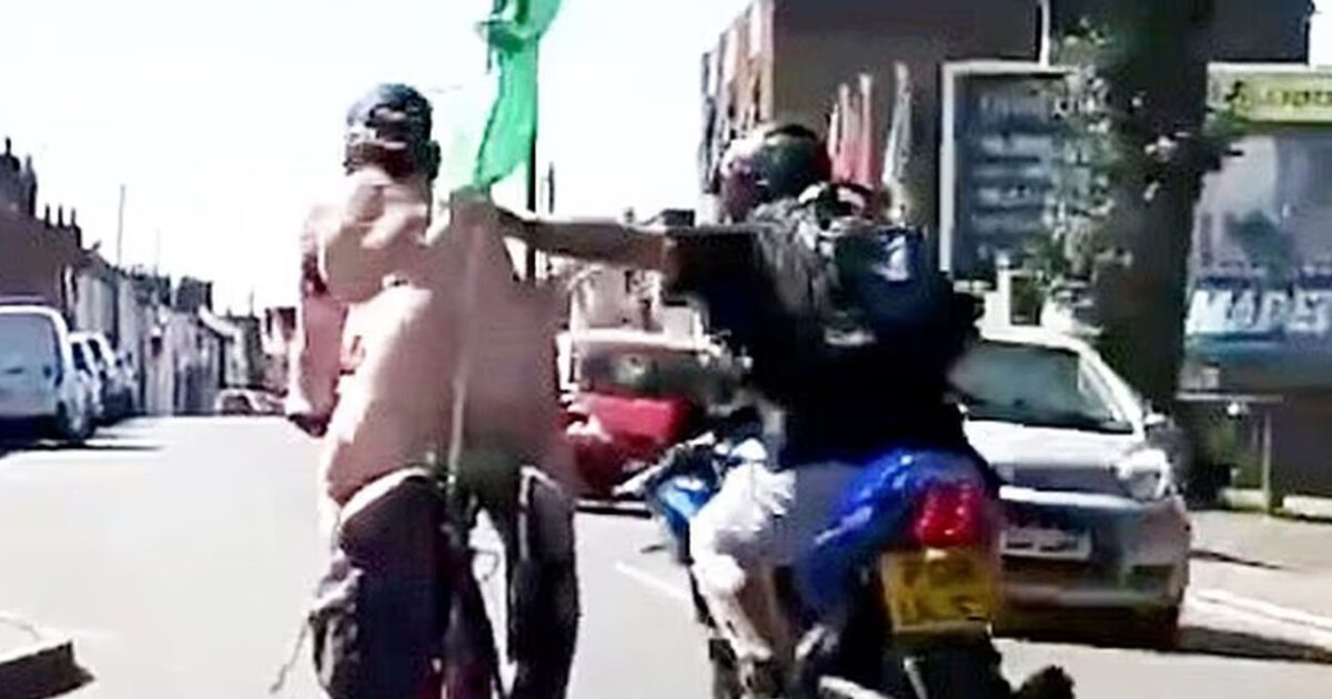 Οργή έχει προκαλέσει ένα βίντεο που δείχνει έναν άντρα πάνω σε μία μηχανή να χτυπά έναν γυμνό ποδηλάτη και να τον ρίχνει στον δρόμο. Ο ποδηλάτης έπαιρνε μέρος σε μία φιλανθρωπική δράση.