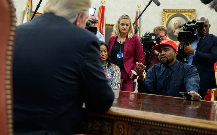 Ο πρόεδρος των ΗΠΑ υποδέχθηκε την Πέμπτη στο οβάλ γραφείο τον Κάνιε Γουέστ, με τον οποίο συζήτησε για όλα τα τρέχοντα θέματα, ενώ ο διάσημος ράπερ δεν δίστασε να αγκαλιάσει τον Αμερικανό πρόεδρο ενώ καθόταν στην προεδρική καρέκλα.