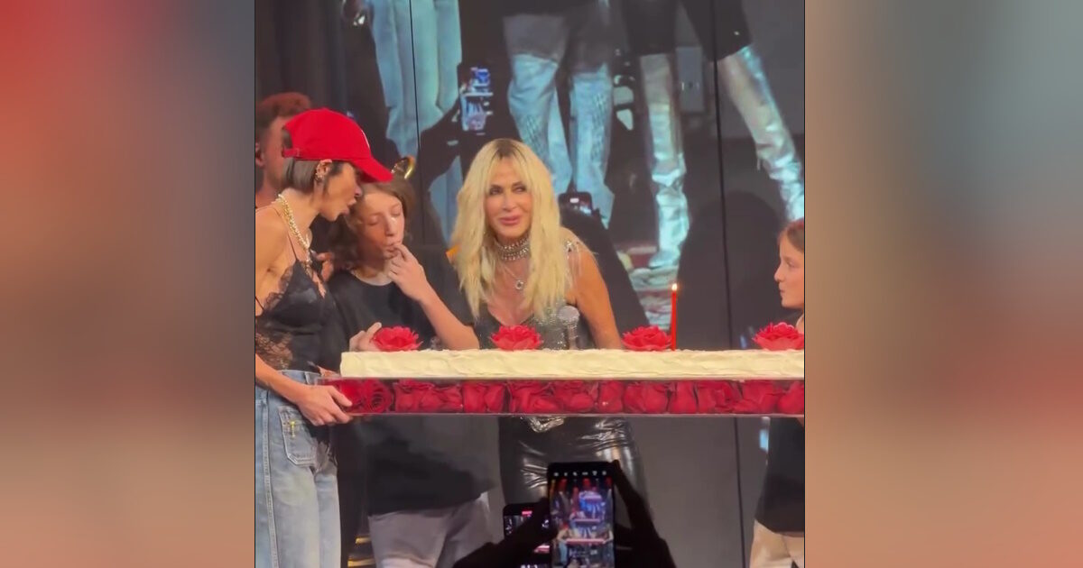 Η κόρη της Άννας Βίσση ανέβηκε στη σκηνή με τα παιδιά της, με μια εντυπωσιακή τούρτα γεμάτη τριαντάφυλλα για να ευχηθούν στην μεγάλη τραγουδίστρια τα χρόνια πολλά.