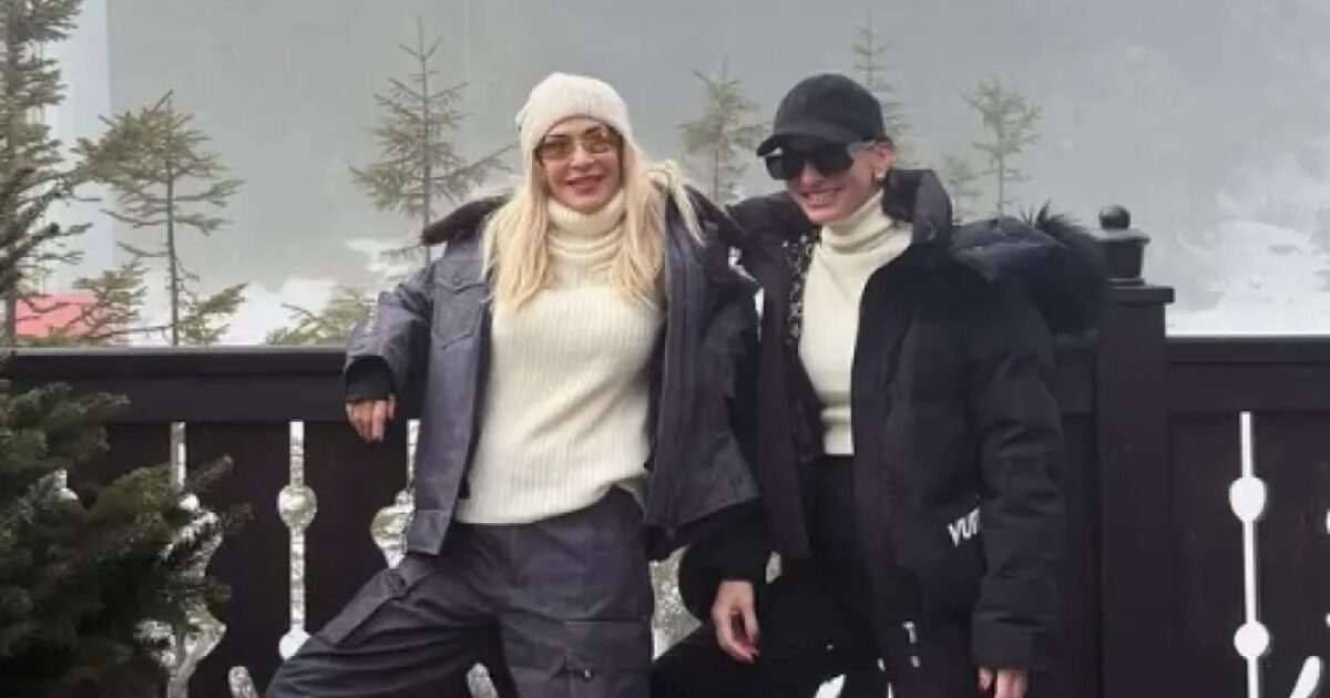 Σε ένα από τα στιγμιότυπα φαίνεται να ποζάρει με φόντο το χιονισμένο τοπίο και τα έλατα, ενώ σε μια άλλη φωτογραφίζεται καθισμένη σε μια πολυθρόνα.