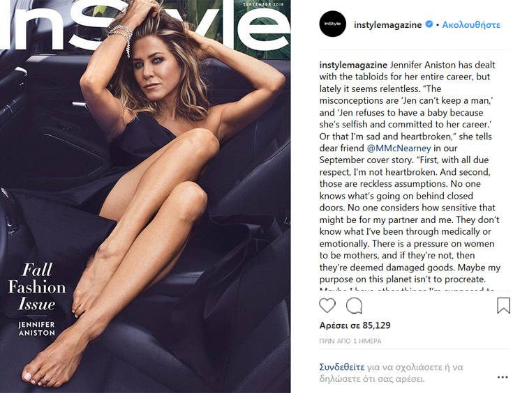 Λίγους μήνες μετά το πολυσυζητημένο διαζύγιό της με τον Τζάστιν Θερού, η Τζένιφερ Άνιστον «σπάει» τη σιωπή της και μιλάει για όλα. Για τον χωρισμό της, τις φήμες και τα δημοσιεύματα για την προσωπική της ζωή. Ωστόσο, αίσθηση προκάλεσε το γεγονός ότι η ελληνικής καταγωγής ηθοποιός, για πρώτη φορά απαντά στις φήμες που κυκλοφορούν για τους λόγους που δεν έγινε μάνα.