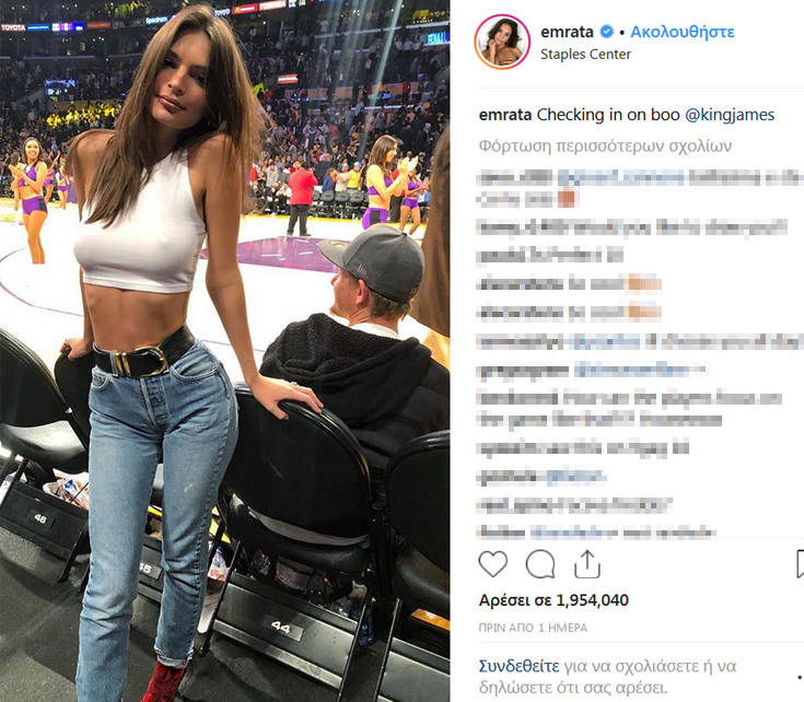 Η Emily Ratajkowski πήγε να δει από κοντά τον αγώνα των Λέικερς με τους Τίμπεργουλβς αλλά φρόντισε να κλέψει την παράσταση.