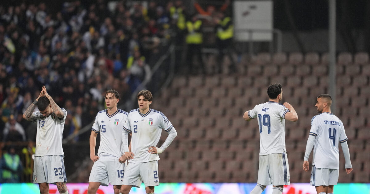Οι παίκτες της Εθνικής Ιταλίας μετά τον αποκλεισμό από το Μουντιάλ/ (Fabio Ferrari/LaPresse via AP)