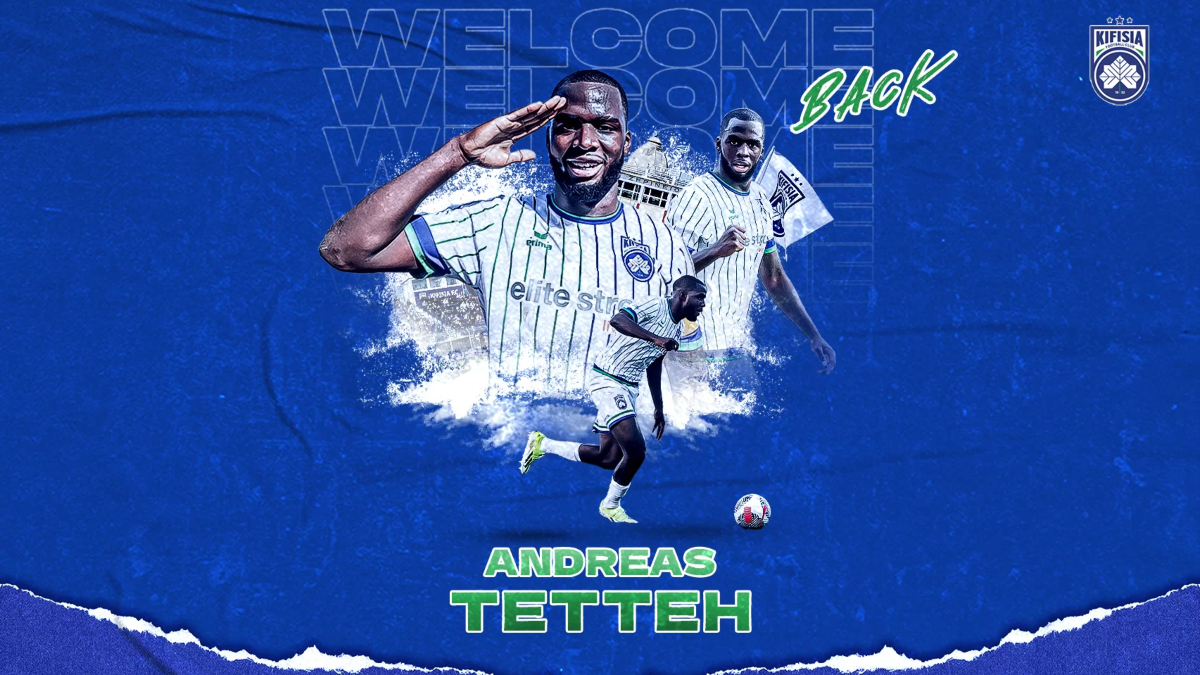 «Andreas is back… Η ΠΑΕ Κηφισιά ανακοινώνει την από κοινού απόφαση με την ΠΑΕ Παναιτωλικός για τη διακοπή του δανεισμού του Ανδρέα Τετέι και την επιστροφή στο… σπίτι του! Ο Ανδρέας Τετέι αγωνίστηκε στον Παναιτωλικό στο β’ μισό της περσινής σεζόν, καταγράφοντας 2 γκολ και 3 ασίστ σε 13 συμμετοχές στη Stoiximan Super League.