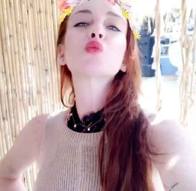 Τελευταία προσθήκη, ένα βίντεο που δείχνει την ίδια σε κοντινό πλάνο φορώντας ένα ανοιχτό ροζ φόρεμα και από κάτω ένα σέξι μαγιό στο χρώμα του δέρματος με μαύρη δαντέλα, στέλνοντας φιλιά στους θαυμαστές της.