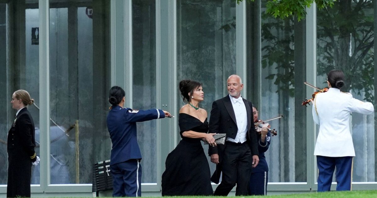 Η 56χρονη Λόρεν Σάντσεζ – σύζυγος του Τζεφ Μπέζος της Amazon – τράβηξε όλα τα βλέμματα, καθώς κατέφθασε πιασμένη χέρι-χέρι με τον σύζυγό της στον Λευκό Οίκο για να παραστούν στο χλιδάτο δείπνο Τραμπ στον Κάρολο. Για την περίσταση επέλεξε ένα μαύρο, στράπλες φόρεμα με βαθύ ντεκολτέ, το οποίο συνδύασε με ένα εντυπωσιακό πράσινο κολιέ. Από την πλευρά του, ο μεγιστάνας της Amazon, φόρεσε ένα κλασικό μαύρο φράκο με λευκό παπιγιόν.