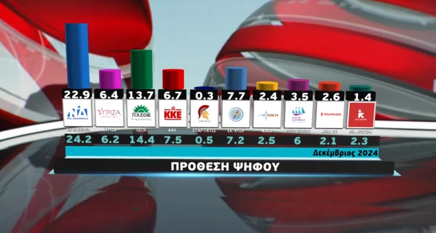 Στη βάση των παραπάνω η εκτίμηση ψήφου της Metron Analysis στη δημοσκόπηση που ετοίμασε για το MEGA και η οποία παρουσιάστηκε στο βραδινό δελτίο της Τετάρτης 22 Ιανουαρίου, δείχνει τη Νέα Δημοκρατία να κινείται σταθερά κάτω από το 30%, στο 29,1%, και άρα μακριά από την αυτοδυναμία, το ΠΑΣΟΚ σταθερά στο 17,4%, δυσκολευόμενο να περάσει το κατώφλι του 20%, τον ΣΥΡΙΖΑ με μικρή άνοδο στο 8,1% (με το Κίνημα Δημοκρατίας να περνά οριακά το κατώφλι του 3%), την Ελληνική Λύση να ανεβαίνει στο 9,8%, τη Φωνή της Λογικής στο 7,1%. Αυτή τη φορά το ΜέΡΑ25 φαίνεται να έχει τη δυνατότητα να περάσει το 3%, ας αντίθεση με τη Νέα Αριστερά που εκτιμάται στο 1,8%.