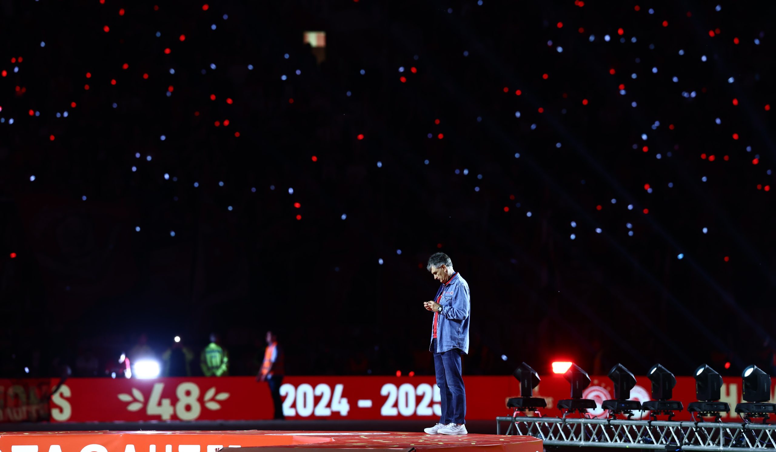 Υπάρχουν εκατοντάδες καρέ που θα μείνουν αξέχαστα από τη φιέστα του Ολυμπιακού για την κατάκτηση του πρωταθλήματος, όμως ένα ξεχωρίζει. Ο Χοσέ Λουίς Μεντιλίμπαρ, ένας προπονητής που έχει κατακτήσει δύο ευρωπαϊκούς τίτλους και έχει προπονήσει συλλόγους όπως η Σεβίλλη, η Αθλέτικ Μπιλμπάο και ο Ολυμπιακός, έγινε για πρώτη φορά πρωταθλητής. Ο φωτογραφικός φακός τον “έπιασε” να κοιτάζει το μετάλλιο σε μία μοναδική στιγμή που άργησε, αλλά έγινε πραγματικότητα για τον 64χρονο.