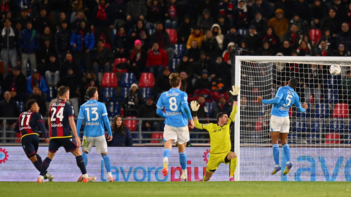 Στο δεύτερο μισό, η εικόνα ήταν διαφορετική. Η Μπολόνια είχε κατά κύριο λόγο την πρωτοβουλία των κίνησεων και έψαχνε συνεχώς τον τρόπο να απειλήσει για να φέρει το ματς σε ισορροπία. Αυτό το κατάφερε στο 64ο λεπτό και μάλιστα με εντυπωσιακό τρόπο. Ο Όντγκαρντ έκανε το γύρισμα από τα αριστερά, με τον Ντογέ να εκτελεί με τακουνάκι στην κίνηση και την μπάλα να πηγαίνει αρχικά στο οριζόντιο δοκάρι και έπειτα στα δίχτυα για το 1-1. Στο φινάλε, η Νάπολι έχασε τεράστια ευκαιρία με τον Ραχμάνι για να πάρει εκ νέου το προβάδισμα, ωστόσο το γύρισμα του δεν ήταν καλό με την μπάλα να περνά άουτ και ο διαιτητής σφύριξε για τελευταία φορά.