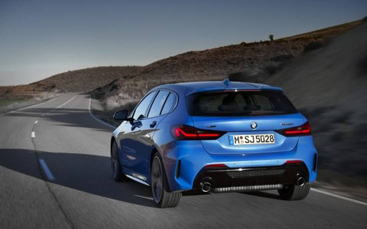 Καλοσχηματισμένες επιφάνειες και εντυπωσιακές πίσω απολήξεις εξαγωγής διαμέτρου 90 mm (ή 100 mm για τις φαλτσοκομμένες εξαγωγές της M135i xDrive) σφραγίζουν τη σπορ εμφάνιση του πίσω τμήματος. Η Σειρά 1 διατίθεται με νέες ζάντες αλουμινίου με διαστάσεις που ξεκινούν από 16”, ενώ εκδόσεις 19” διατίθενται προαιρετικά για πρώτη φορά.