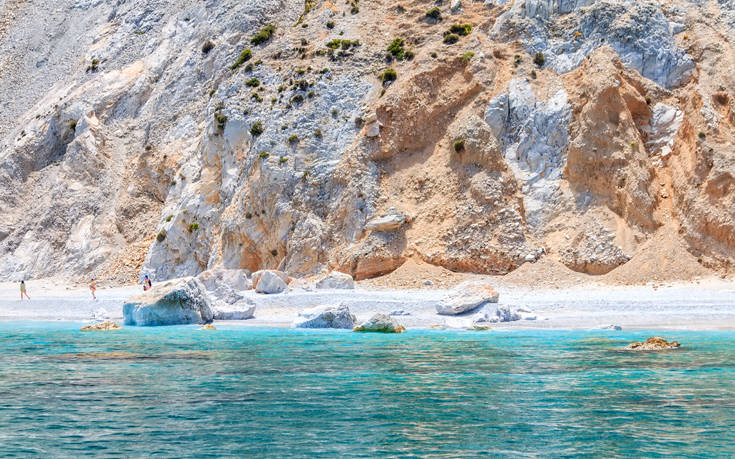 Το θαυμαστό αυτό σκηνικό ολοκληρώνεται από τα ολόλευκα, στρογγυλά βότσαλα της παραλίας αλλά και του βυθού της θαλάσσης, στα οποία οφείλεται και η ονομασία της καθώς οι ντόπιοι τα αποκαλούν λαλάρια.