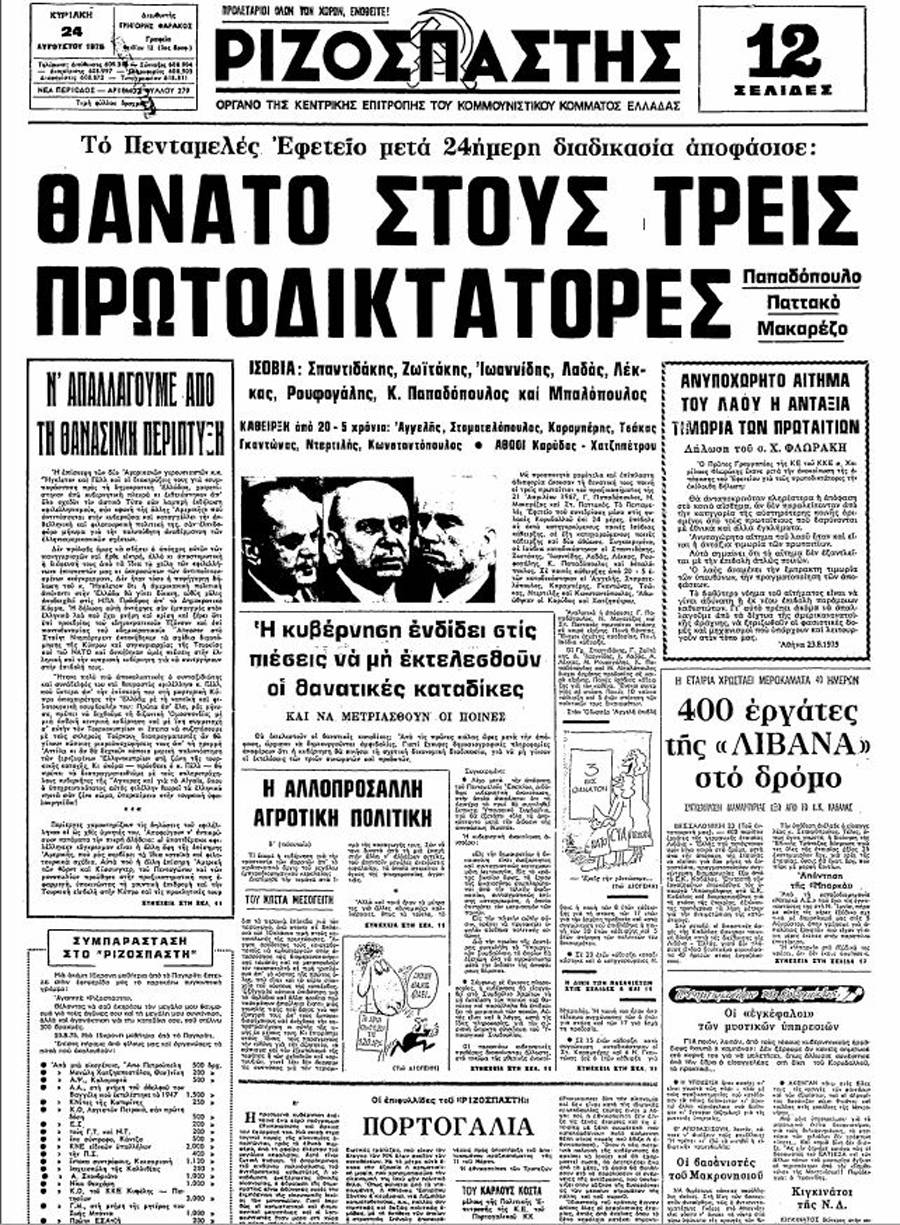 Στις 13:15, το μεσημέρι του Σαββάτου της 23ης Αυγούστου 1975, η ελληνική «Δίκη της Νυρεμβέργης» όπως είχε αποκληθεί από μερίδα του Τύπου, έφτασε στο τέλος της.