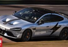 Η κατασκευή παραμένει σχεδόν αγωνιστική: μονοκόκ πλαίσιο από ανθρακόνημα και kevlar, ελάχιστες εξωτερικές παρεμβάσεις και χρώμα Martini Silver. Το εσωτερικό, όμως, αποκαλύπτει έναν διαφορετικό κόσμο -με δέρμα και Alcantara σε καφέ αποχρώσεις και χειροποίητες λεπτομέρειες που αποδεικνύουν ότι κάθε χιλιοστό φτιάχτηκε με προσοχή και ευλάβεια.