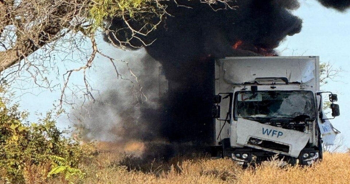 Russia struck a UN @OCHA_Ukraine humanitarian convoy in the Kherson region. Two @WFPUkraine trucks, within the convoy, delivering food and vital aid, were damaged by a deliberate drone attack. Luckily all staff are alive.