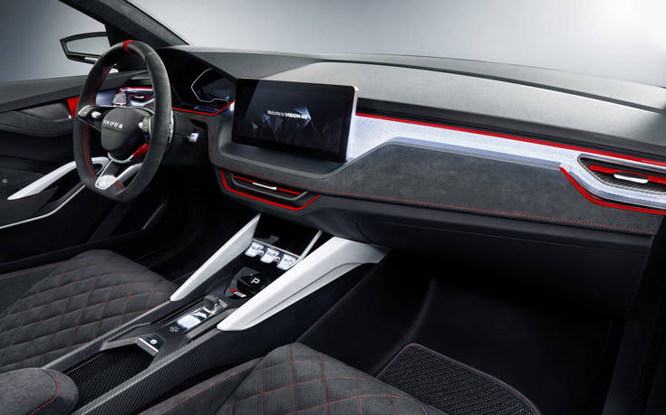 Το εντυπωσιακό μοντέλο, είναι επίσης το πρώτο Skoda που διαθέτει στάνταρ τροχούς 20 ιντσών και το νέο σύστημα ενίσχυσης ήχου Dynamic Sound Boost. Το εσωτερικό τονίζεται από τα σπορ καθίσματα ντυμένα με διάτρητη Alcantara και ειδικό δέρμα, καθώς και το ψηφιακό πίνακα οργάνων (virtual cockpit).
