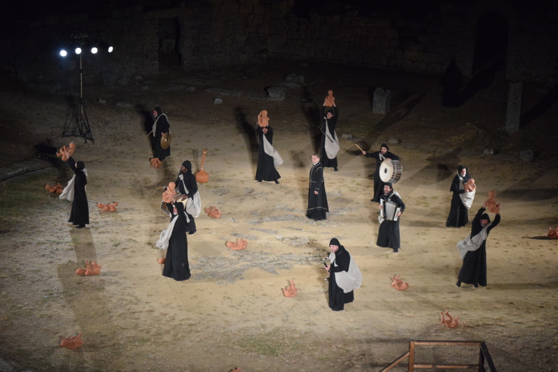 Η χρήση της μουσικής, το διαρκές τραγούδισμα του κειμένου από τον Χορό, με νταούλια, πνευστά (πρωταγωνιστής το κλαρίνο), κρουστά και ένα ακορντεόν να συνοδεύουν, δημιούργησαν τον πραγματικό καμβά πάνω στον οποίο ξεδίπλωσε ο Μαρκουλάκης τον Οιδίποδα. Ο τόσο διαυγής, καθαρός λόγος του Σοφοκλή που αρθρώθηκε στην παράσταση, μέσω του τραγουδίσματος ήταν σαν να ενσταλαζόταν μέσα μας. Μια μετάγγιση του υπέροχου κειμένου του Σοφοκλή, τον εισπράξαμε σαν παλμό. Ο Μίνως Μάτσας αριστουργηματικά απόσταξε τους χυμούς, τις εντάσεις και τις κορυφές του κειμένου του Σοφοκλή.