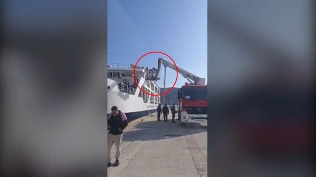 Καθώς το πλοίο πλησίαζε για να δέσει και ο καπετάνιος άνοιγε τον καταπέλτη για να τον ευθυγραμμίσει με την αποβάθρα, αυτός έσπασε για άγνωστο λόγο.