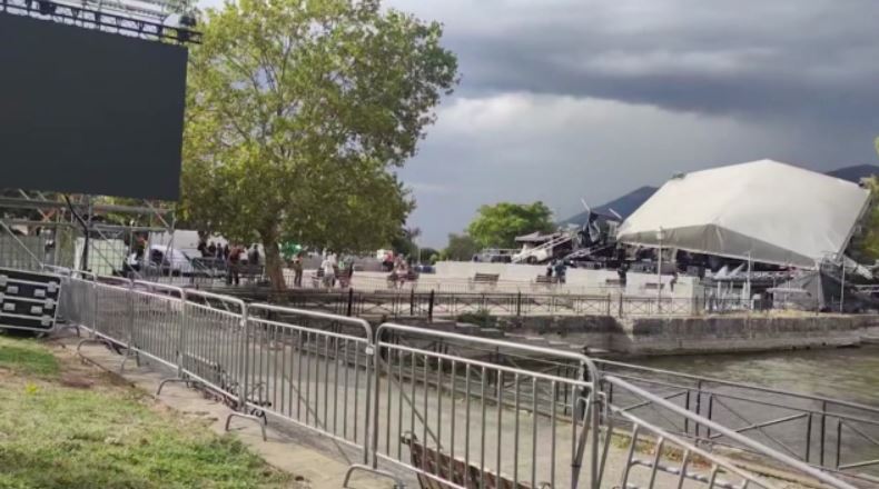 Σύμφωνα με τις πληροφορίες, το στέγαστρο που είχε τοποθετηθεί στην πλατεία Μαβίλη κατέρρευσε λίγο πριν την προγραμματισμένη συναυλία με την Άννα Βίσση, τον Αντώνη Ρέμο και το συγκρότημα Μέλισσες, εξαιτίας της έντονης – αλλά σύντομης – ανεμοθύελλας.