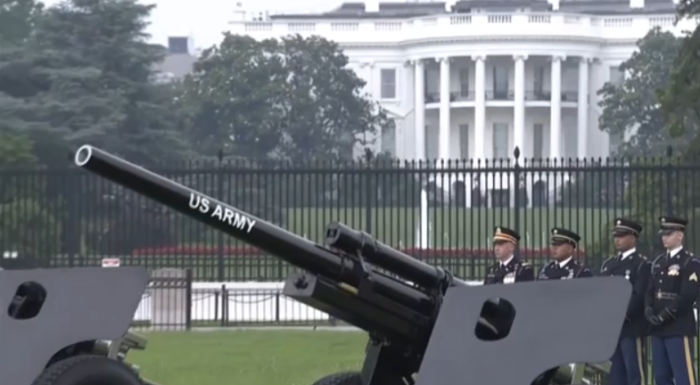 Ο Ρεπουμπλικάνος πρόεδρος για δύο ώρες από ειδική εξέδρα παρακολούθησε 6700 μέλη των ενόπλων δυνάμεων να παρελαύνουν, 150 στρατιωτικά οχήματα, ανάμεσά τους και άρματα μάχης Ambrams.