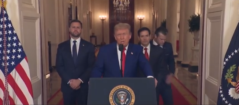 «Απόψε, μπορώ να πω στον κόσμο ότι οι επιθέσεις ήταν μια θεαματική στρατιωτική επιτυχία. Οι βασικές εγκαταστάσεις εμπλουτισμού πυρηνικών όπλων του Ιράν έχουν εξαλείφθηκαν εντελώς και ολοκληρωτικά. Το Ιράν, ο νταής της Μέσης Ανατολής, πρέπει τώρα να κάνει ειρήνη. Αν δεν το κάνει, οι μελλοντικές επιθέσεις θα είναι πολύ μεγαλύτερες και πολύ πιο εύκολες. Για 40 χρόνια, το Ιράν λέει ”θάνατος στην Αμερική” και ”θάνατος στο Ισραήλ”. Σκοτώνουν τον λαό μας, τους ανατινάζουν τα χέρια, τους ανατινάζουν τα πόδια με βόμβες στο δρόμο. Αυτή ήταν η ειδικότητά τους».