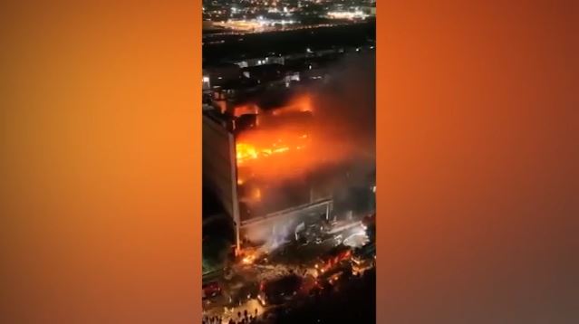Βίντεο στα μέσα κοινωνικής δικτύωσης δείχνουν φλόγες να καταστρέφουν κτίριο πέντε ορόφων, ενώ πυροσβέστες προσπαθούν να περιορίσουν την πυρκαγιά.