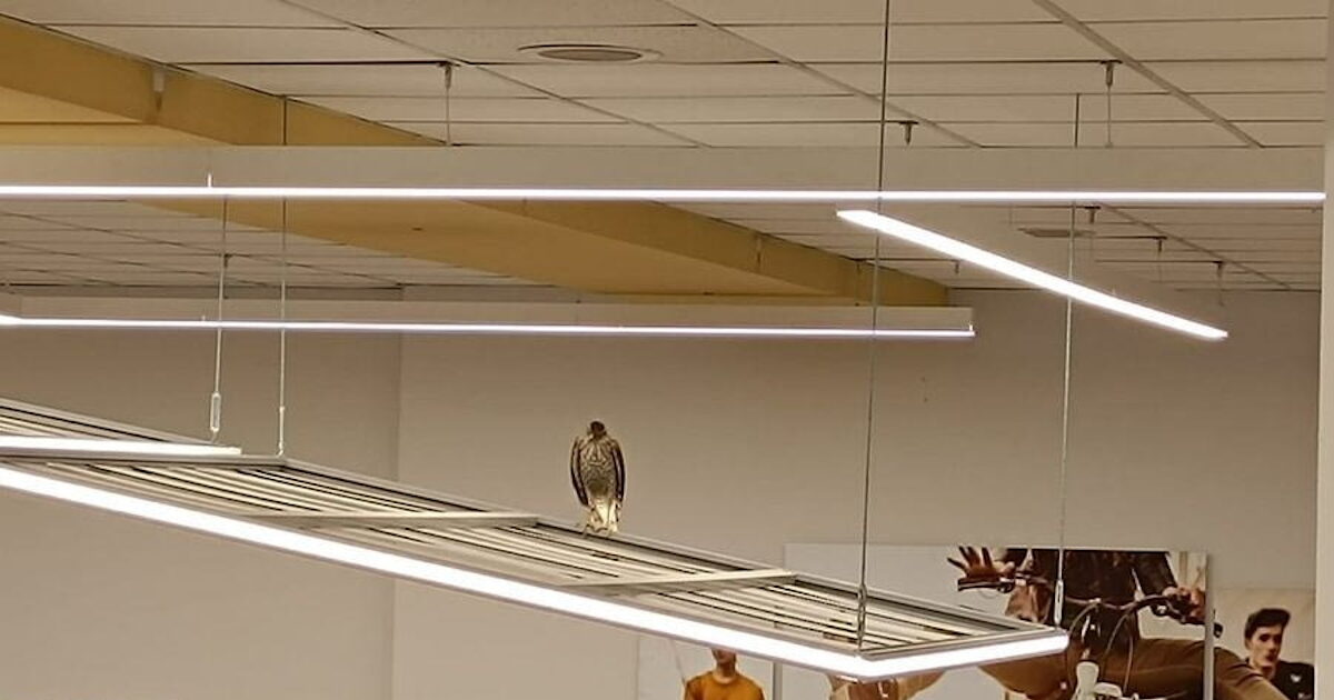 Το γεράκι κάθισε σε ένα από τα φωτιστικά του σούπερ μάρκετ, με τους πυροσβέστες να έχουν δύσκολο έργο για να το απεγκλωβίσουν καθώς το συγκεκριμένο κατάστημα είναι δίπατο.