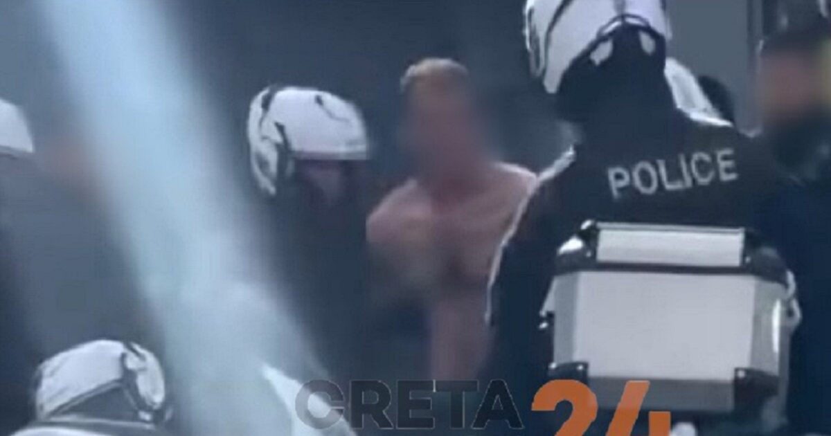 Στο σημείο έσπευσαν άνδρες της ΕΛ.ΑΣ. που κατάφεραν να του περάσουν χειροπέδες και να τον οδηγήσουν στο Αστυνομικό Μέγαρο Ηρακλείου, όπου και κρατείται.