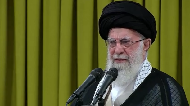 Οκτώβριος 2024. Ο ανώτατος ηγέτης του Ιράν, αγιατολάχ Αλί Χαμενεΐ εμφανίζεται μπροστά στους υποστηρικτές του κρατώντας όπλο.