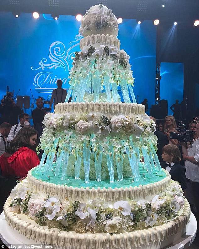 Εκτός από το νυφικό το οποίο είχε διαμαντάκια σε κάθε δυνατό σημείο, πράγμα που το έκανε ακόμη πιο κιτς, η τούρτα ήταν επίσης υπερβολικά στολισμένη.