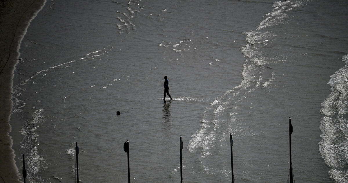Εν μέσω των ιρανικών επιθέσεων, άλλοι βρήκαν την ευκαιρία να κολυμπήσουν στην παραλία στο Τελ Αβίβ.